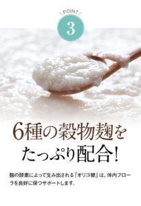酪酸菌、有胞子性乳酸菌、穀物麹をゴールデンバランスで配合。