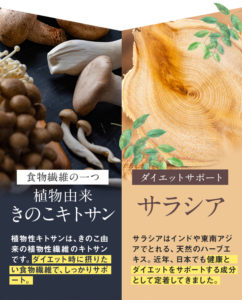 くびれサプリには善玉菌を増やす、サラシアと植物性キトサンを配合し、
