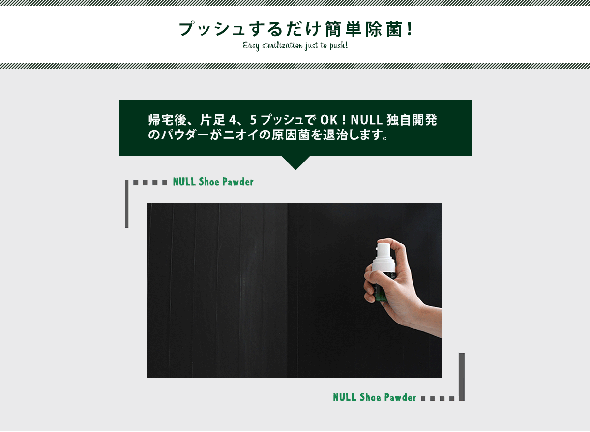 何時でも何処にでも持って歩ける、便利なNULL シューパウダーでワンプッシュ