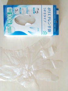 100均、購入したポリエチレン手袋です。